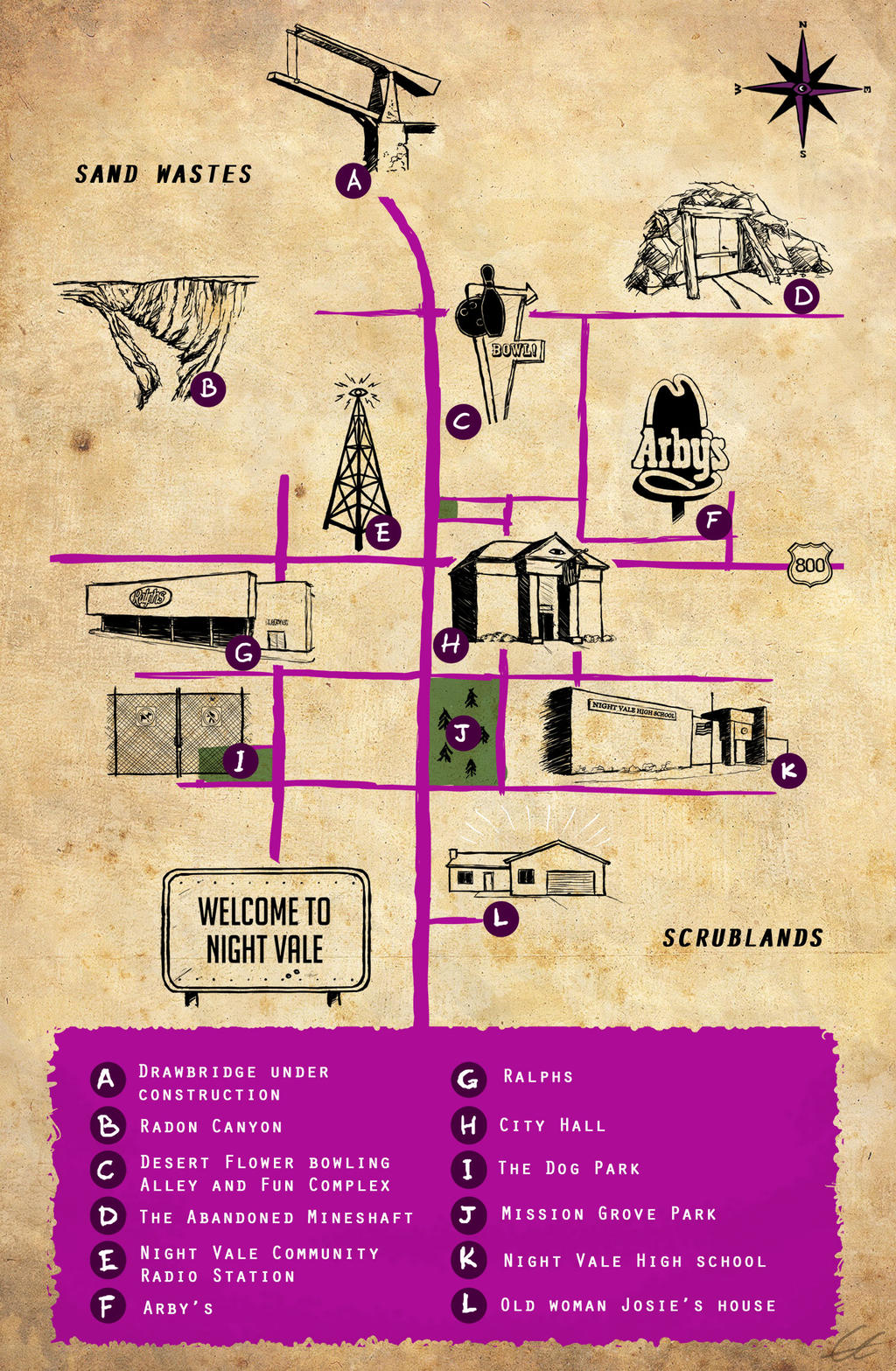 Welcome To Night Vale Map MAP OF NIGHT VALE : r/nightvale: A year ago, Night Vale Presents and Renegade Game Studios announced an official Welcome to Night Vale RPG. Since that announcement, details and developments have been bare. Thankfully, the publisher . Following the tabletop role-playing game’s announcement just over a year ago now, Renegade Game Studios have provided an update on their upcoming release based on the Welcome to Night Vale podcast. .